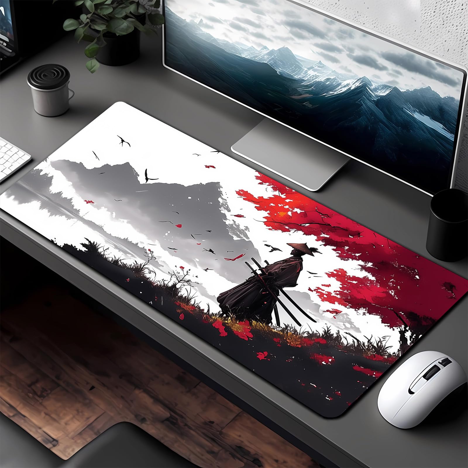 KZARYVEXIS Tapis de Souris de Jeu Japonais XXL 800x300x3mm, Tapis de Bureau Antidérapant et Imperméable à Bords Cousus pour Gamer, PC et Ordinateur Portable (Jeu2)