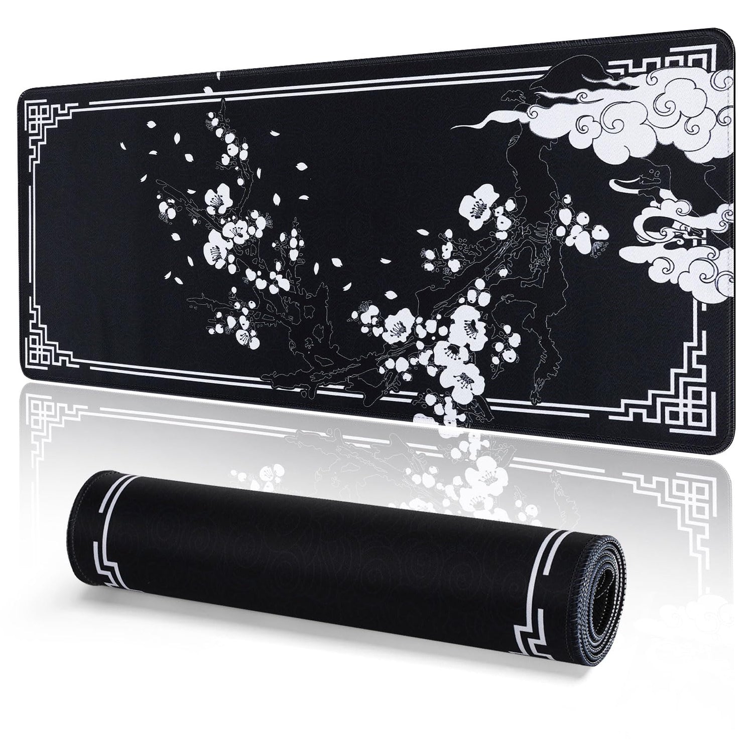 EFISH Tapis de Souris Japanese Cherry Blossom (800×300×3MM) Large et étendu, Tapis de Souris à Bords Cousus, Base en Caoutchouc antidérapante, Jeu